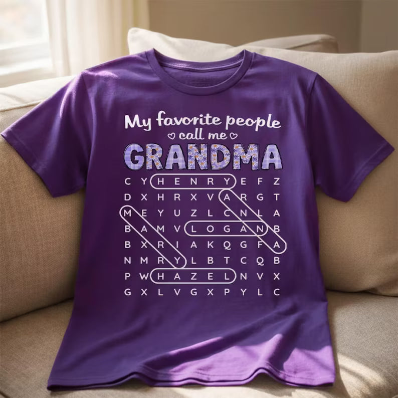 Custom Word Search Puzzle T-shirt for Mom, Grandma, Mother's Day Personalized Tee, Puzzle Queen Keepsake, Premium Gift Idea for Nana, Mama